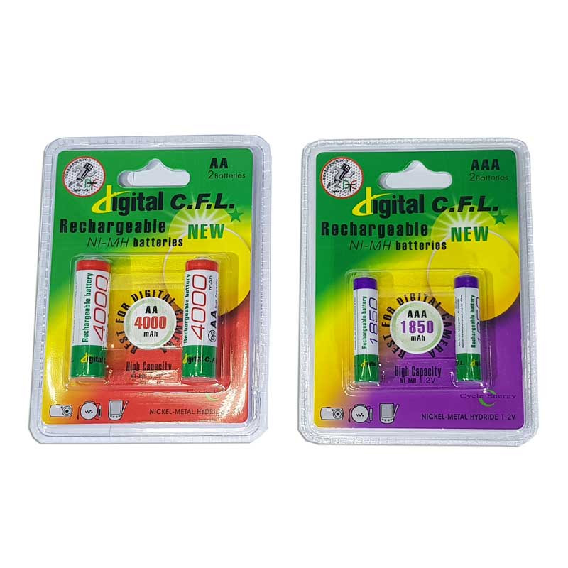 باتری قلمی و نیم قلمی قابل شارژ سی.اف.ال دیجیتال مدل 4000/1850mAh بسته 4 عددی