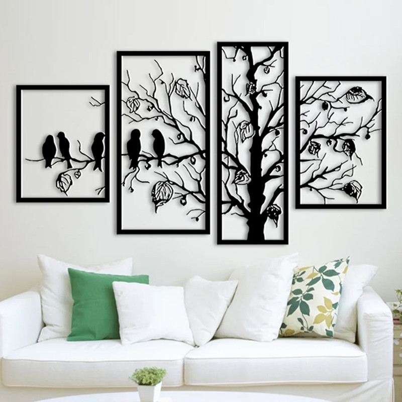 دیوارکوب طرح درخت و پرنده کد 61-13 مجموعه چهار عددی
