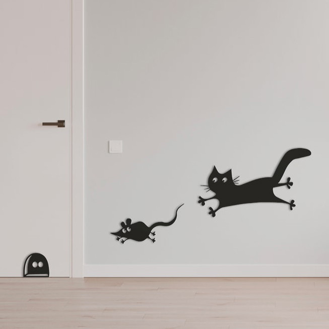دیوارکوب مدل موش و گربه چوبی کد T28 مجموعه سه عددی