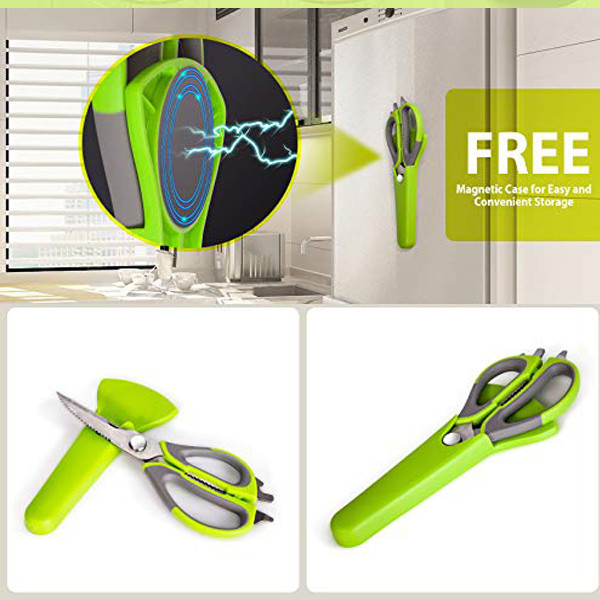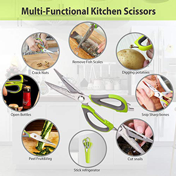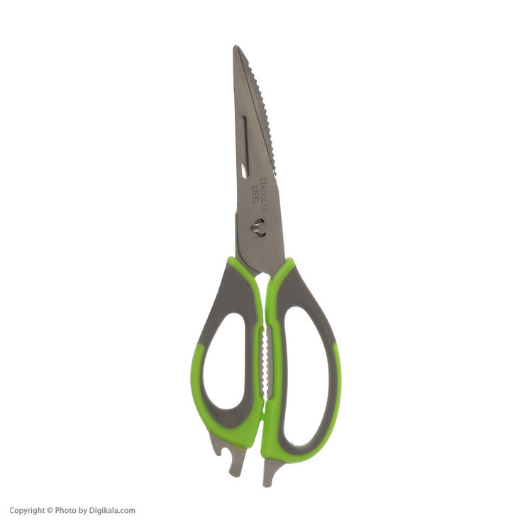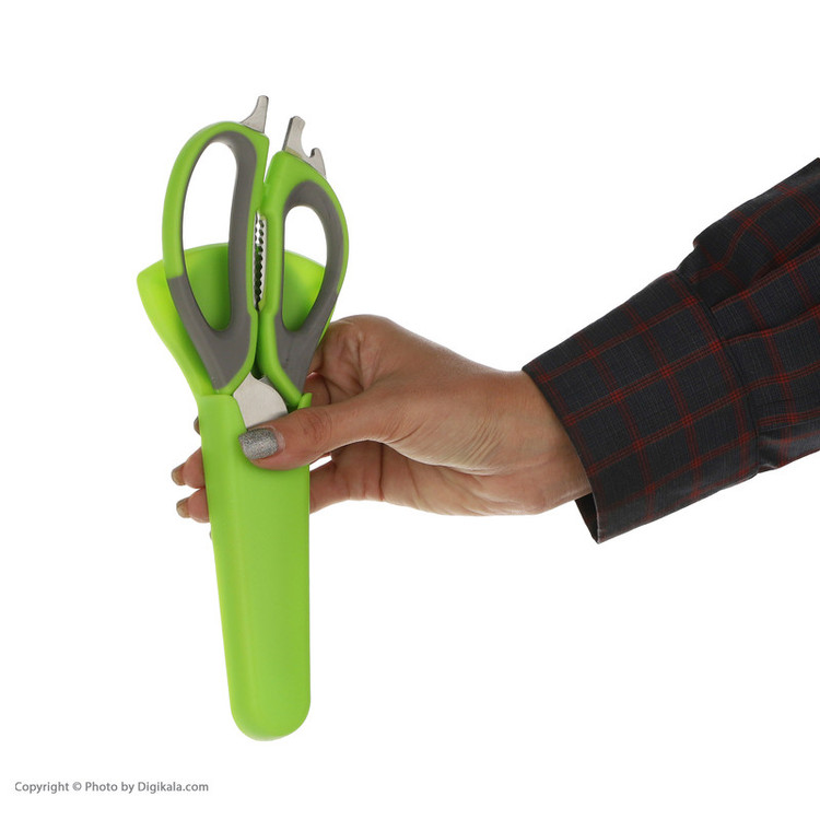 _ قیچی 8 کاره شامل : پوستکن , فلس گیر , درب بازکن , گردوشکن , پیچ گوشتی ,قیچی برش گوشت و مرغ , لکه گیر و چاقوی برش