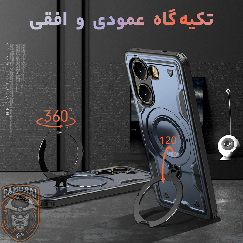 حلقه مغناطیسی قوی (N52) پایه نگهدارنده چرخشی 360 درجه قابلیت استند افقی و عمودی ایربگ تقویتشده در 4 گوشه مناسب برای کار، مطالعه، تماشا و سلفی