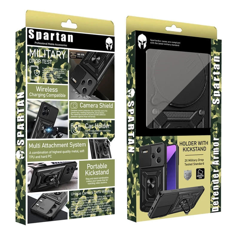 مقاوم در برابر ضربه , دارای استانداردهای نظامی مقاومت در برابر سقوط , قابلیت تبدیل شدن به استند , لبه های برجسته برای محافظت صفحه نمایش , لبه های برجسته برای محافظت دوربین , مقاوم در برابر خط و خش , پشتیبانی از شارژ بیسیم , آویز