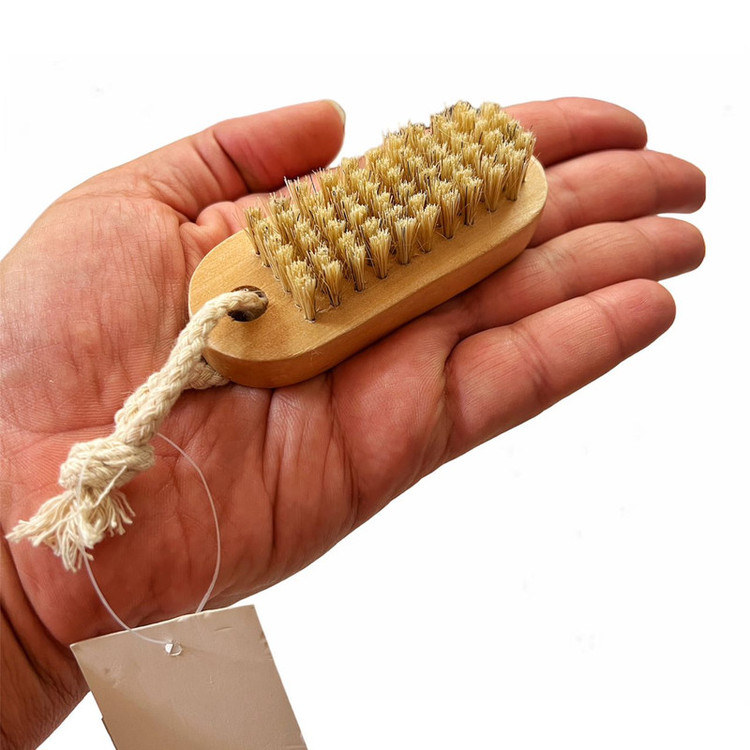 برس ناخن چوبی بدنه چوب بامبو برس گیاهی نصبتا زبر سبک و خوش دست ضد آب با دوام بالا همراه با بند آویز
