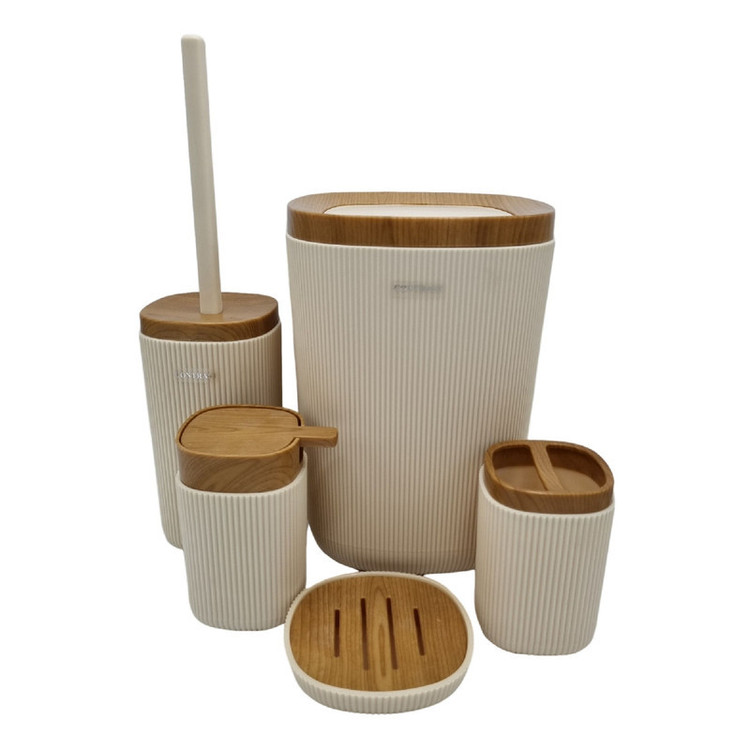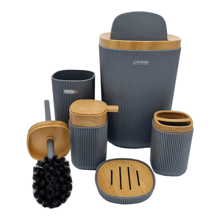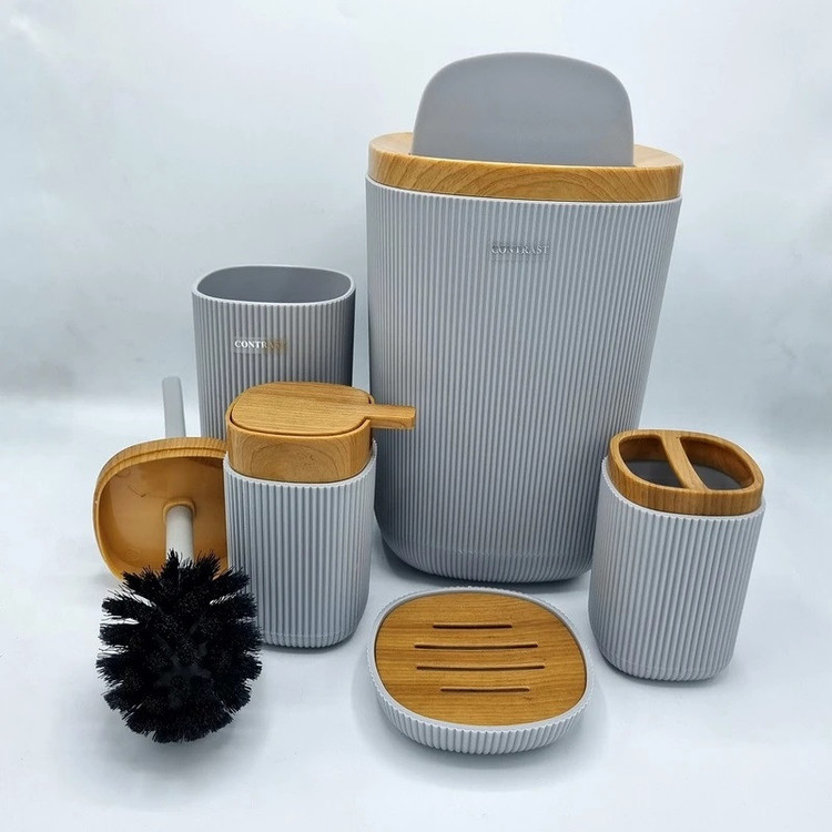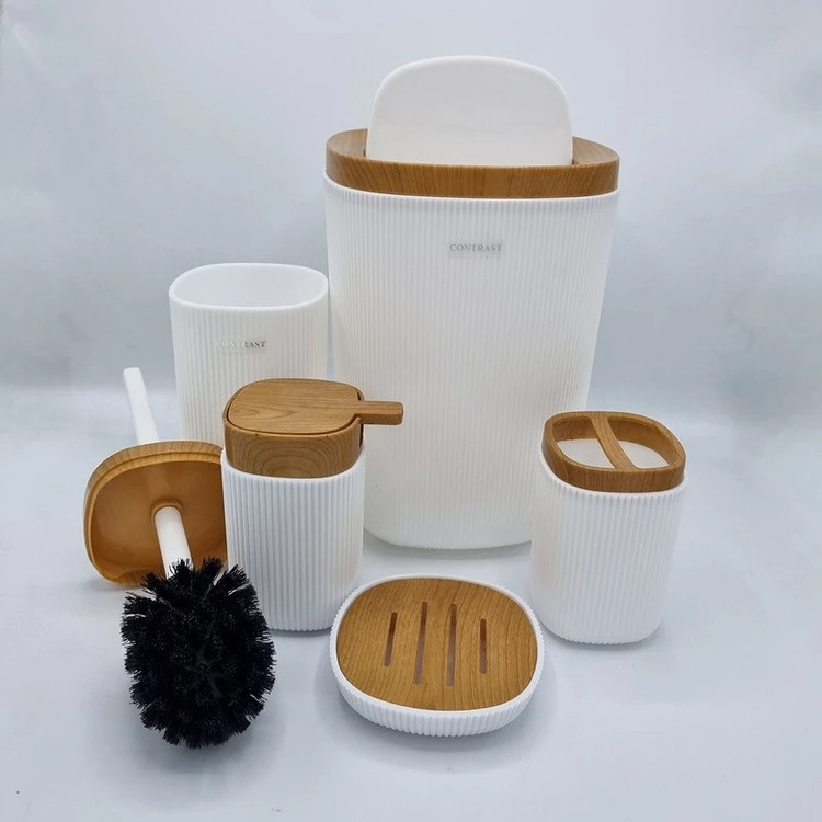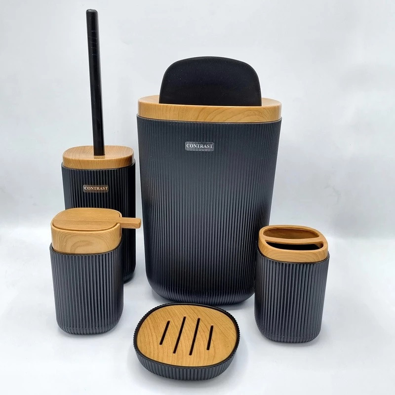 ست سرویس بهداشتی کنتراست مدل روما خطی درب سطل باد بزنی سطل و برس جامسواک جامایع جاصابون