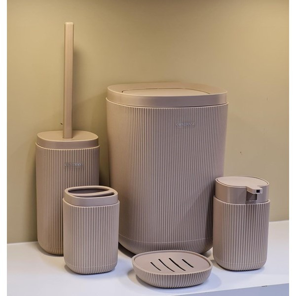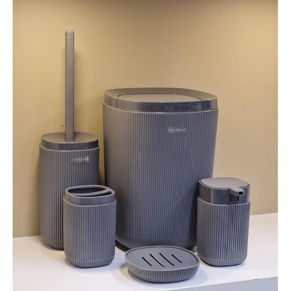 سایر توضیحات: جنس از پلاستیک مواد نو pp نشکن آنتی باکتریال پنج پارچه شامل: سطل با درب بادبزنی،فرچه،جا مایع،جامسواک،جا صابون جنس از پلاستیک مواد نو PP قابل شست و شو با هر نوع مواد رنگ ثابت و بسیار شیک