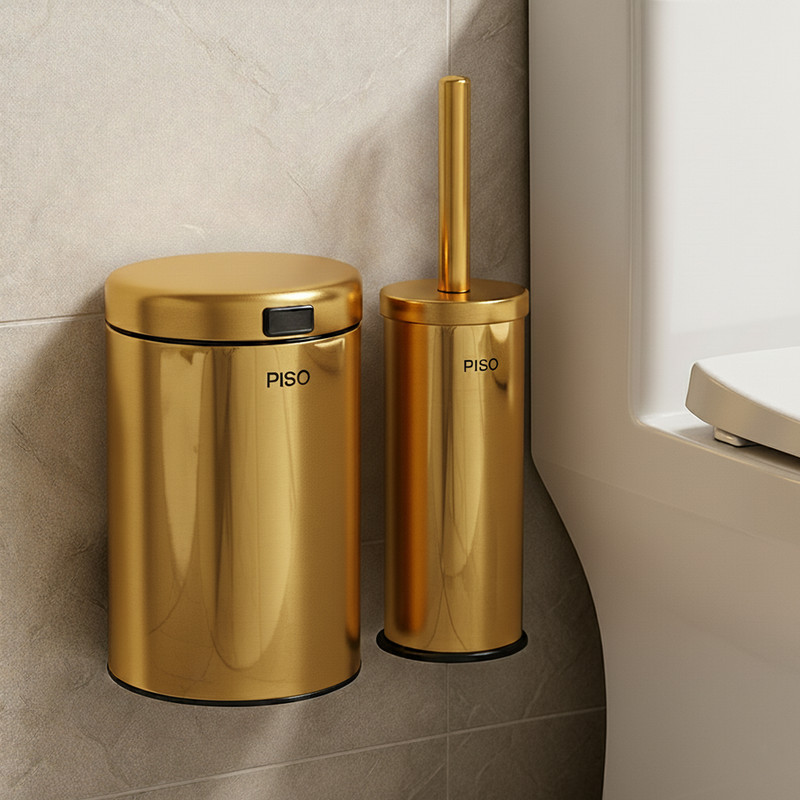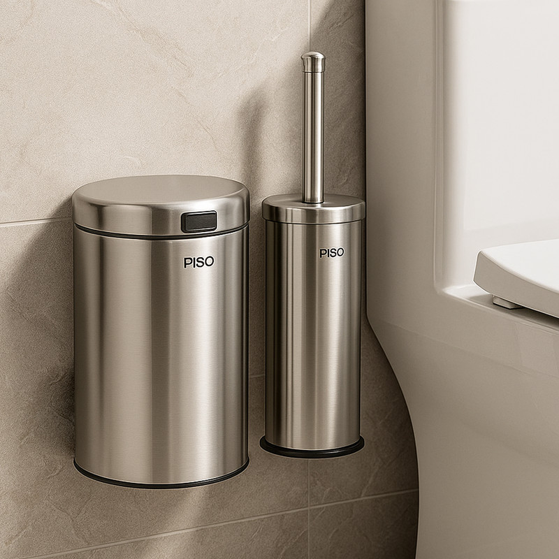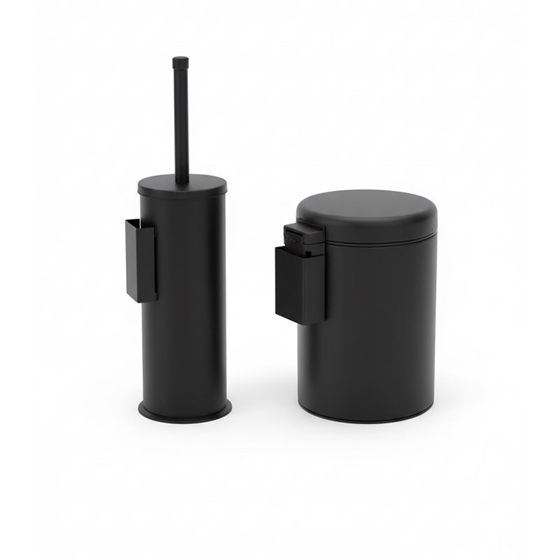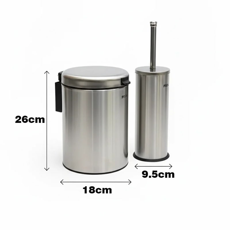 سطل زباله این ست دارای درب آرامبند است که با عملکرد نرم و بیصدا باز و بسته میشود، و برس توالتشوی نیز درون محفظهی استیل قرار دارد تا از انتشار بو و آلودگی جلوگیری شود. طراحی مینیمال و براق بدنه با رنگ استیل مات، به راحتی با انواع دکور سرویس بهداشتی هماهنگ میشود.