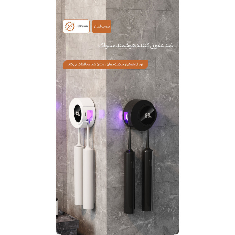 ظرفیت نگهداری مسواک: 2 عدد