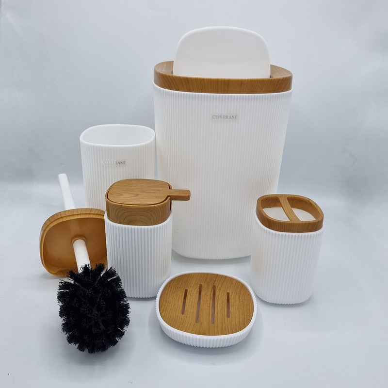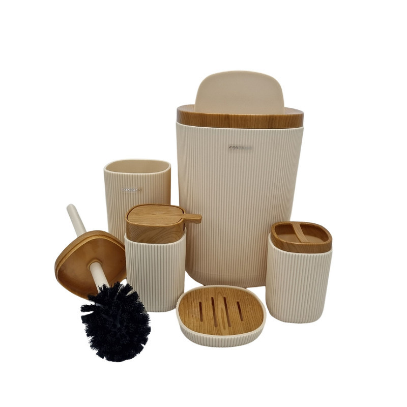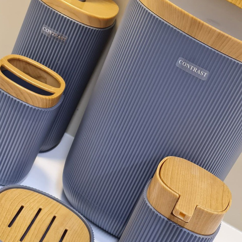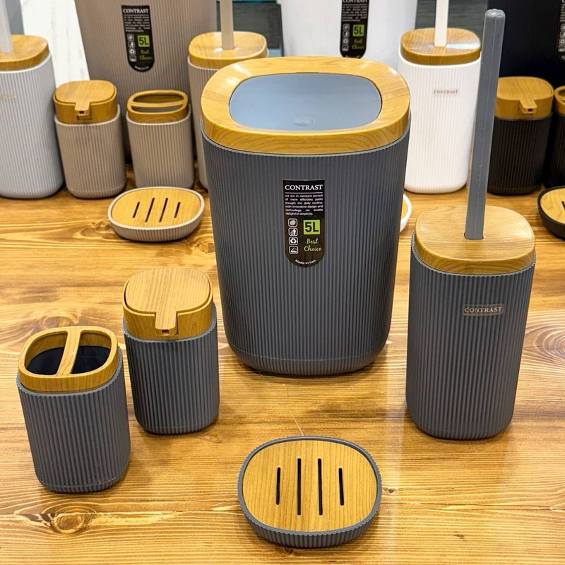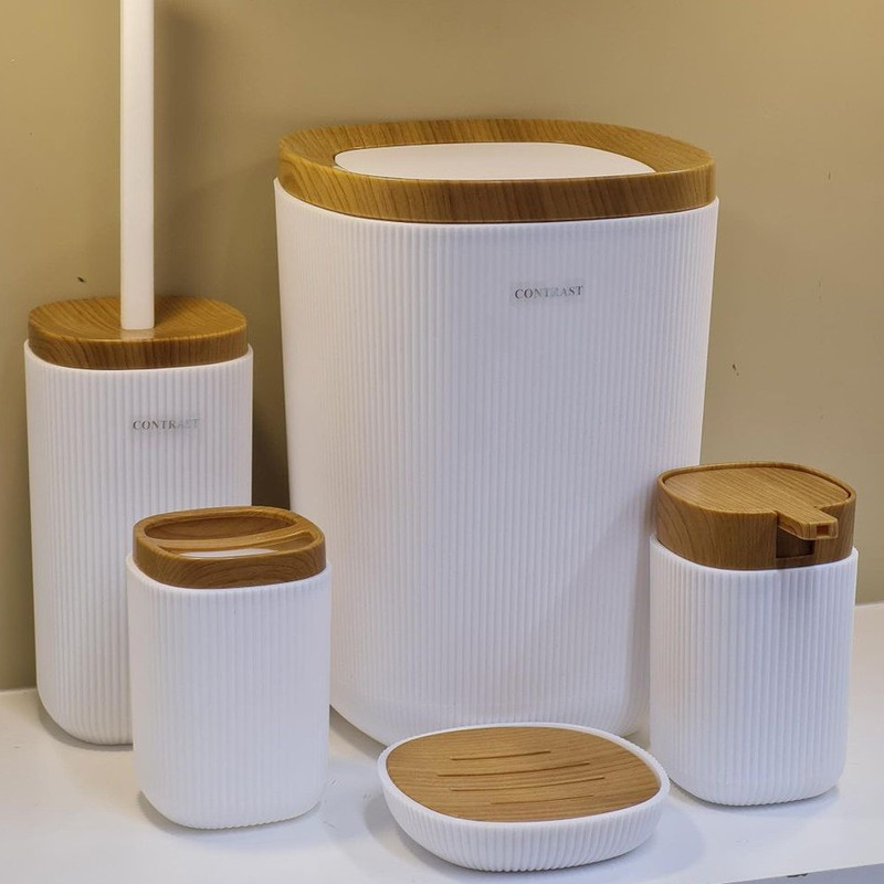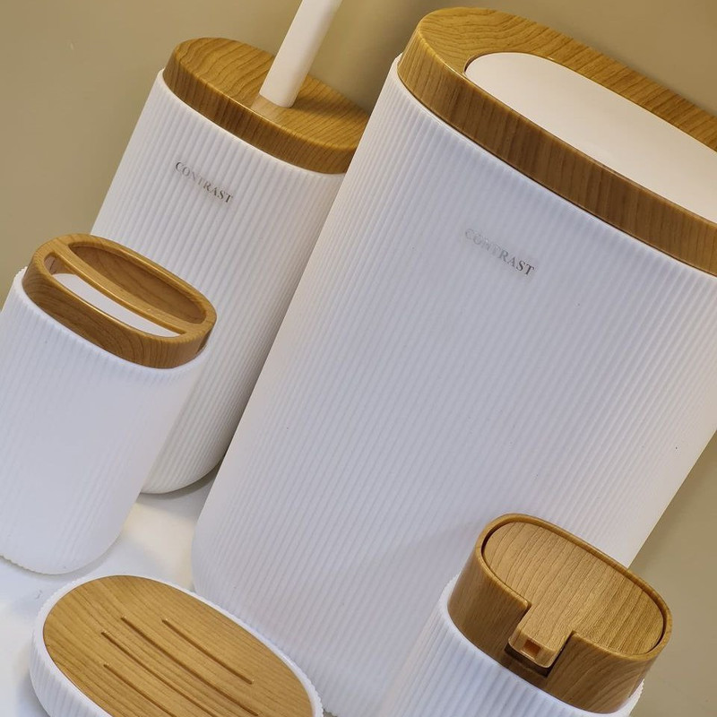 آیا عاشق حس و حال چوب و دکوراسیون روستیک هستید اما نگران پوسیدگی و خرابی چوب در محیط مرطوب سرویس بهداشتی هستید؟ ست 5 پارچه کنتراست (Contrast) مدل روما با طرح چوب، دقیقاً همان چیزی است که به دنبالش هستید. این محصول با ترکیب هوشمندانه طراحی مدرن و نقش و نگار چوب، فضایی گرم، لوکس و آرامشبخش (مانند اسپاهای طبیعی) را در سرویس بهداشتی شما خلق میکند.