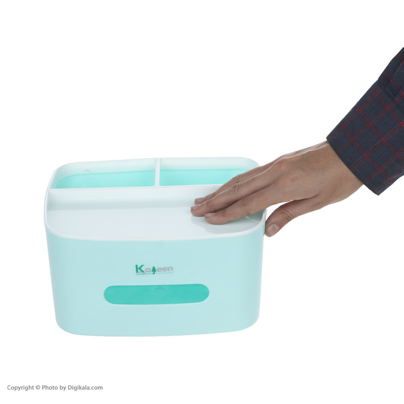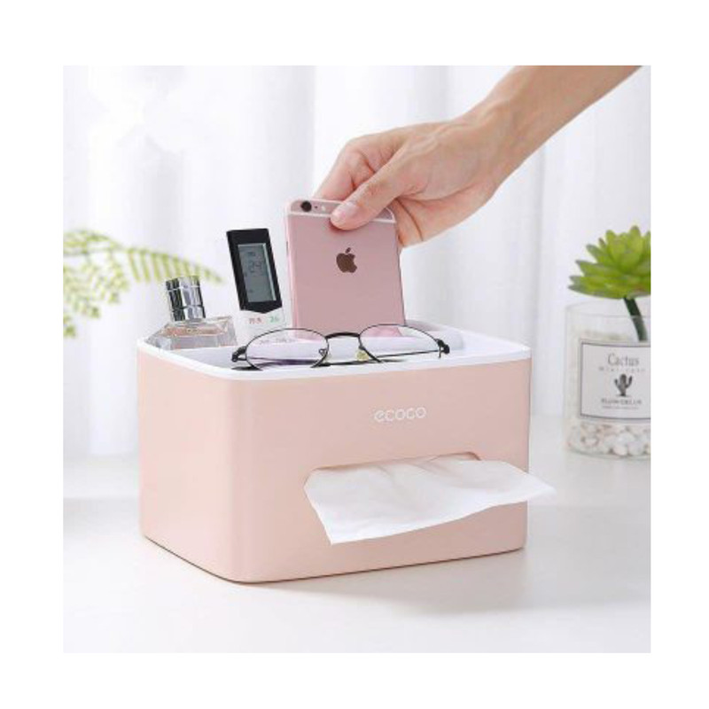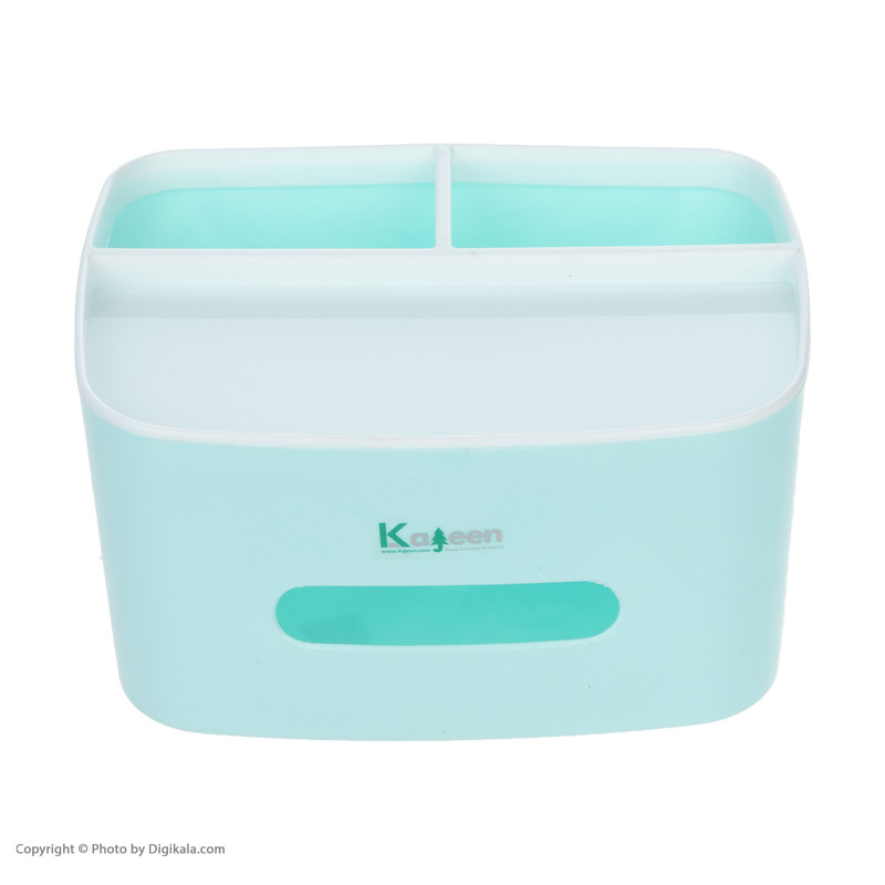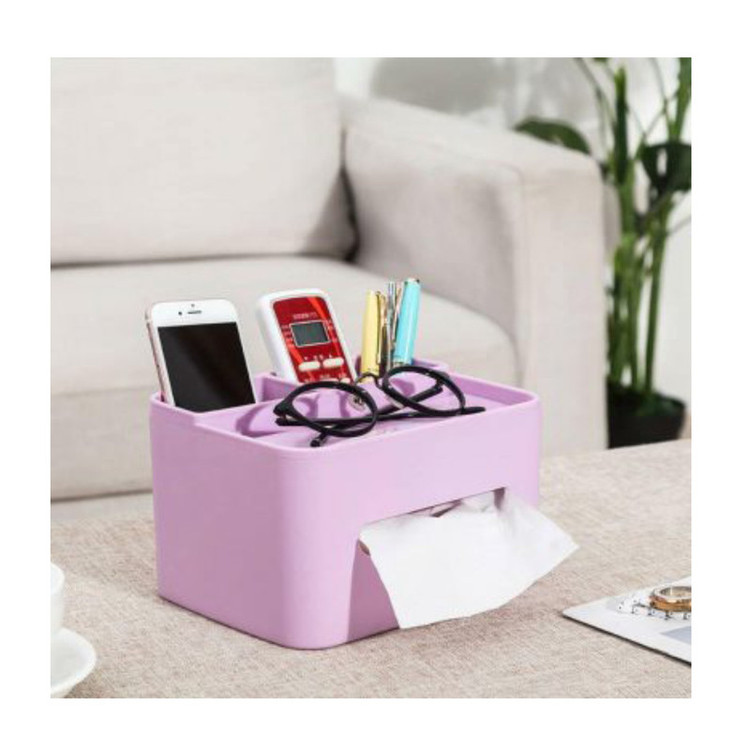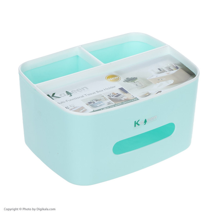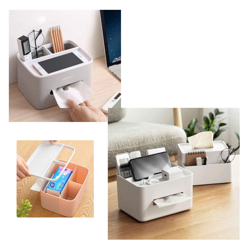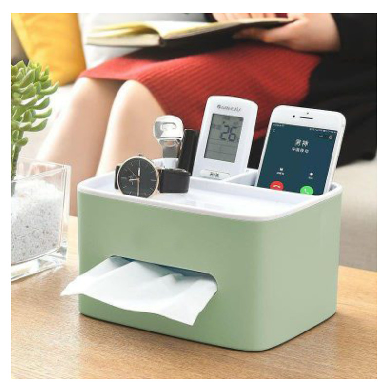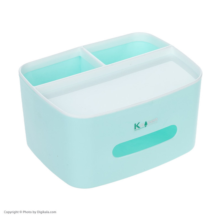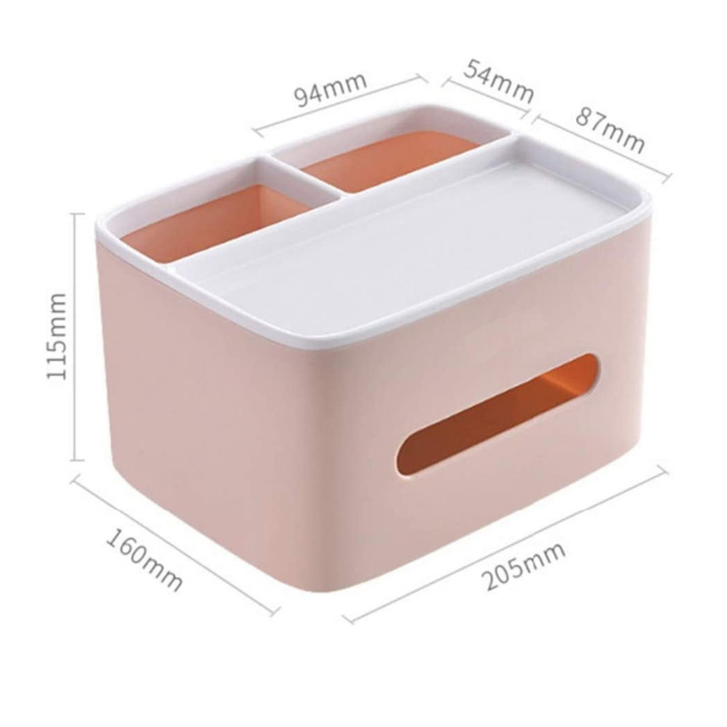 ارگانایزر دستمال کاغذی و وسایل فانتزی و شیک دارای ۲ محفظه ی نگهداری وسایل روی میز جنس پلاستیک باکیفیت در چندین رنگ شاد و ملایم سفید صورتی بنفش سبز آبی قابل استفاده بصورت استند رومیزی