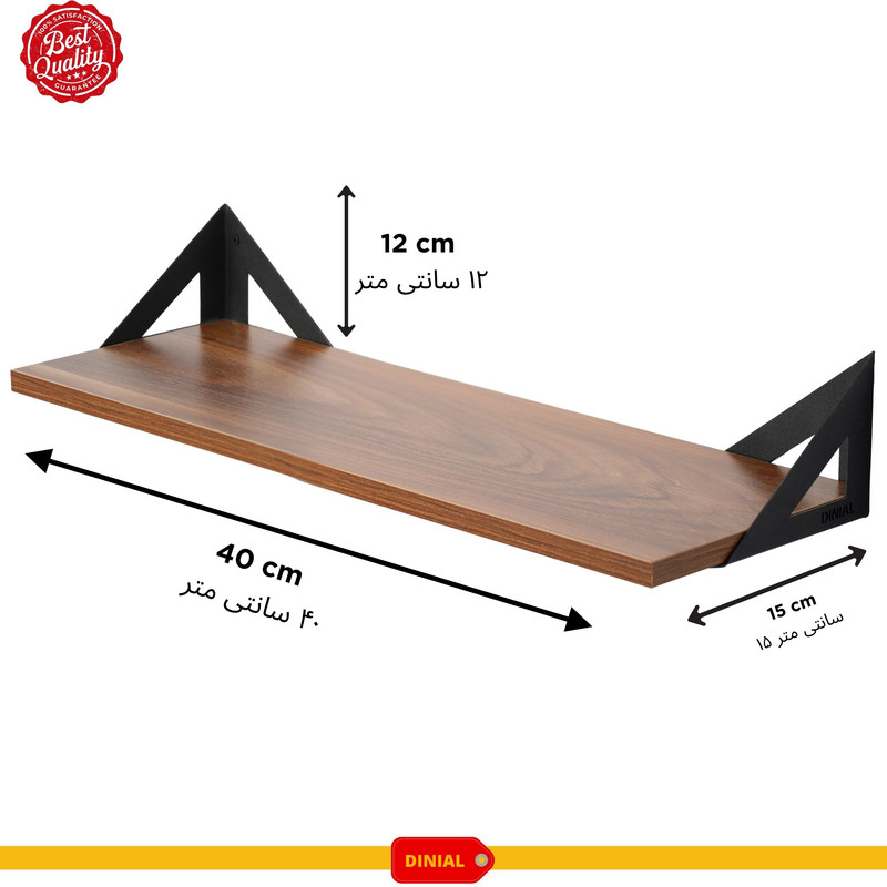 شلف دیواری دینیال ساخته شده از ام دی اف با مغز و روکش خارجی , پایه های فلزی این محصول با رنگ کوره ای نقش بسیار مهمی در کیفیت و مقاومت محصول دارد