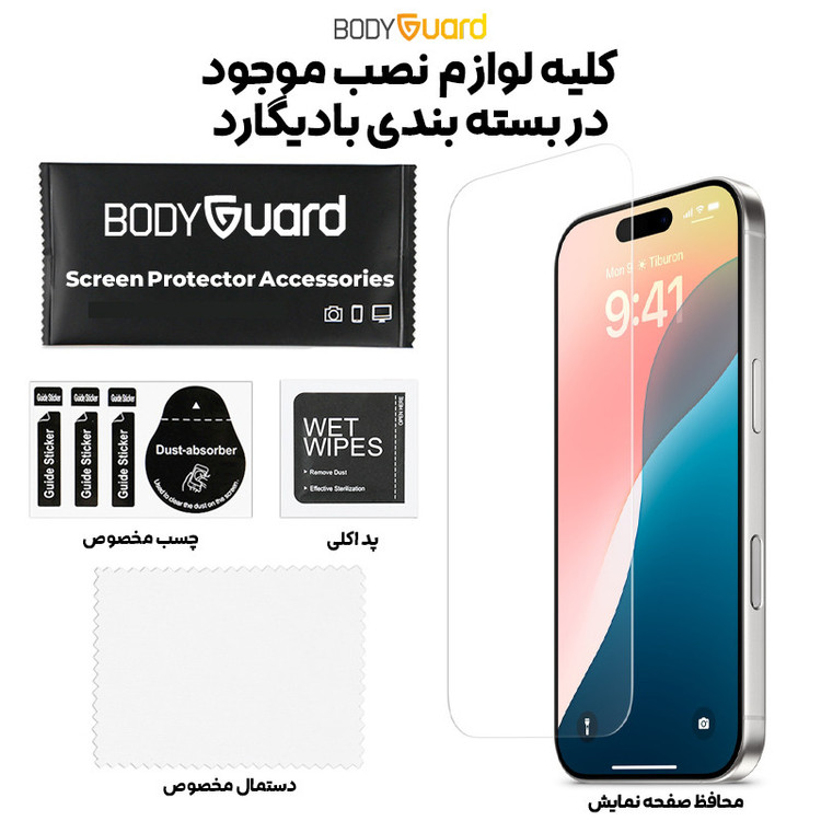 گلس شیشه ای - نصب آسان - نصب بدون حباب - تمام لوازم مورد نیاز نصب داخل بسته بندی