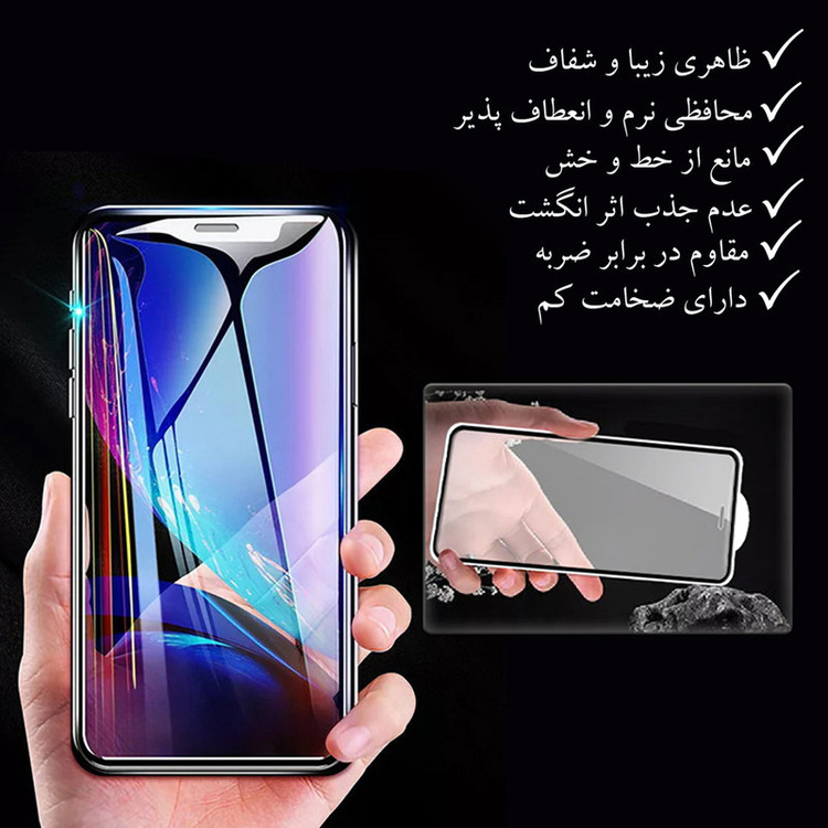 ویژگیها: 9H , قابلیت نصب آسان , مقاوم در برابر چربی و اثرانگشت , مقاوم در برابر خط و خش , نصب بدون حباب