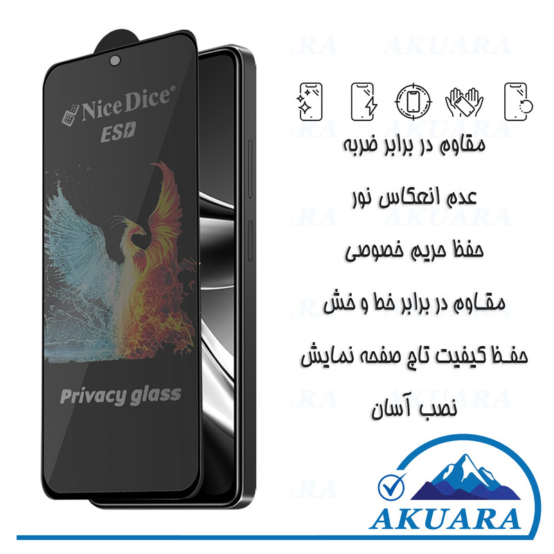 محافظ صفحه نمایش حریم شخصی آکوآرا مدل AKU npv1 مناسب برای گوشی موبایل سامسونگ Galaxy A72 / A73 / A81 / M52 / M53 / M54 / M62 / F62 / Note 10 Lite / S10 Lite