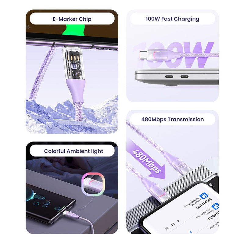 دارای نور RGB زیبا - حداکثر توان انتقال شارژد 100 وات - جنس کنفی با کیفیت