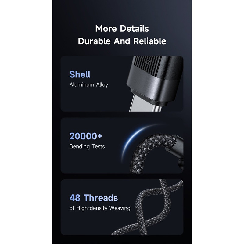 جنس کابل: آلیاژ آلمینیوم و نایلون بافته شده