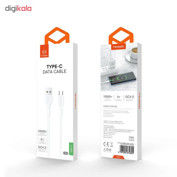 پشتیبانی از شارژ سریع QC 4.0 قابلیت انتقال اطلاعات جنس کابل TPE با کیفیت A+ کابل دارای شیلد آلومینیومی داخلی