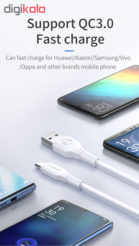 پشتیبانی از شارژ سریع QC 4.0 قابلیت انتقال اطلاعات جنس کابل TPE با کیفیت A+ کابل دارای شیلد آلومینیومی داخلی