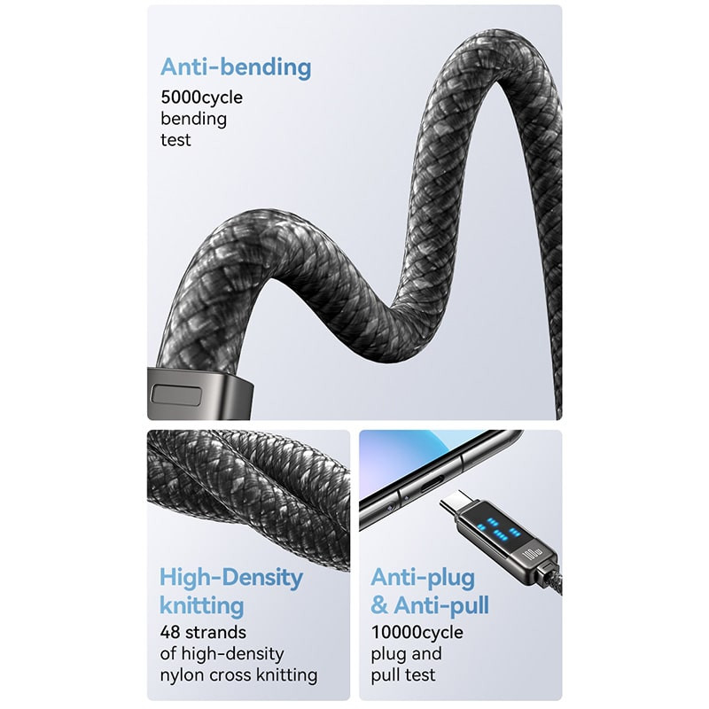 نمایشگر روی کابل به صورت نمایشی انتقال شارژ به گوشی شما را نشان می دهد که به جذابیت آن افزوده است.قدرت انتقال شارژ تا 100 وات
