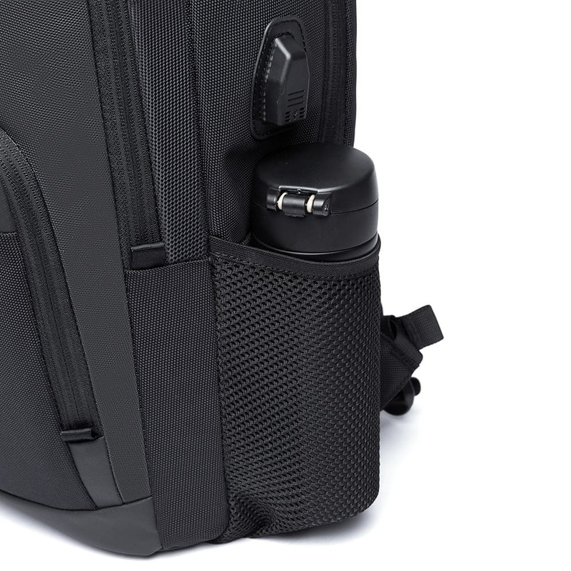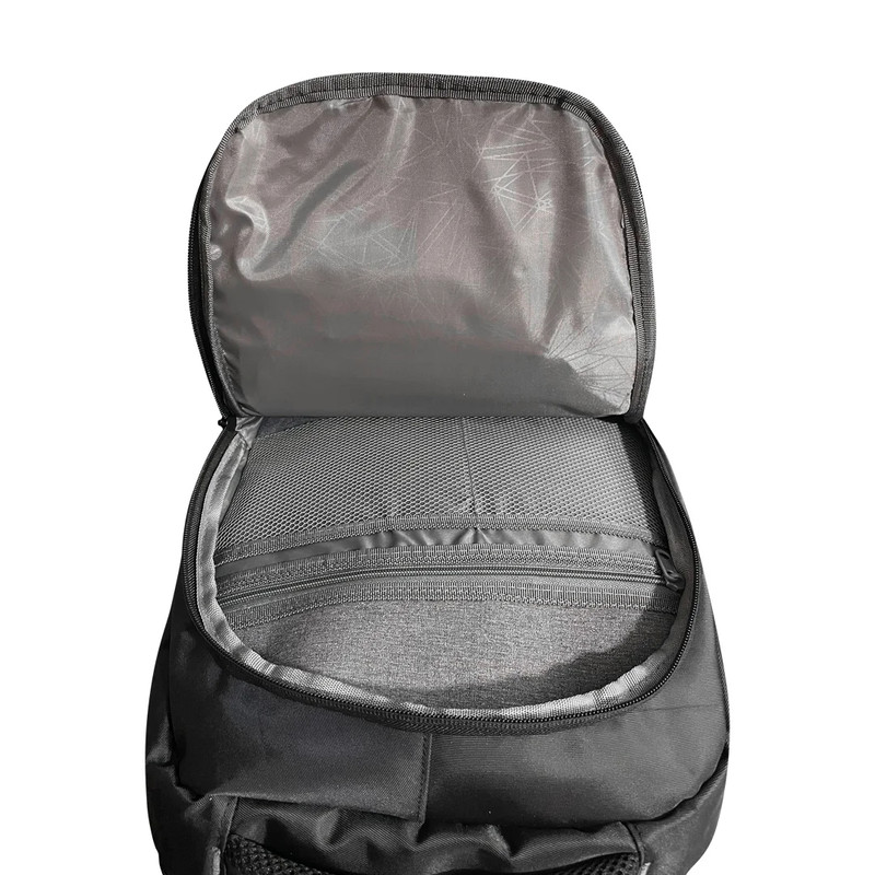 دارای یک محفظه بزرگ برای لباس و لوازم حجیم، یک محفظه برای لپتاپ، 2 محفظه کوچک در جلوی کیف برای لوازم کوچک و 2 جیب کشی در کناره ها برای چتر و بتری نوشیدنی