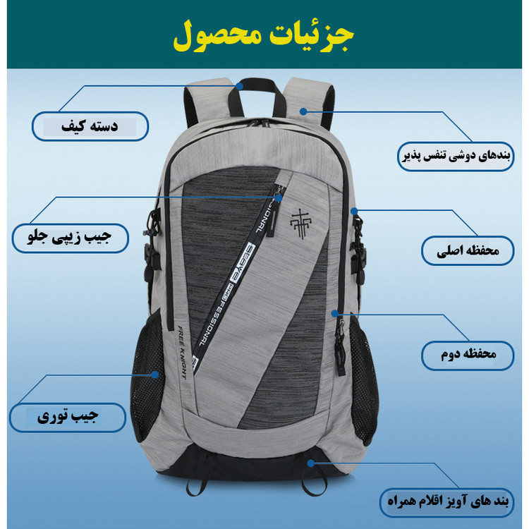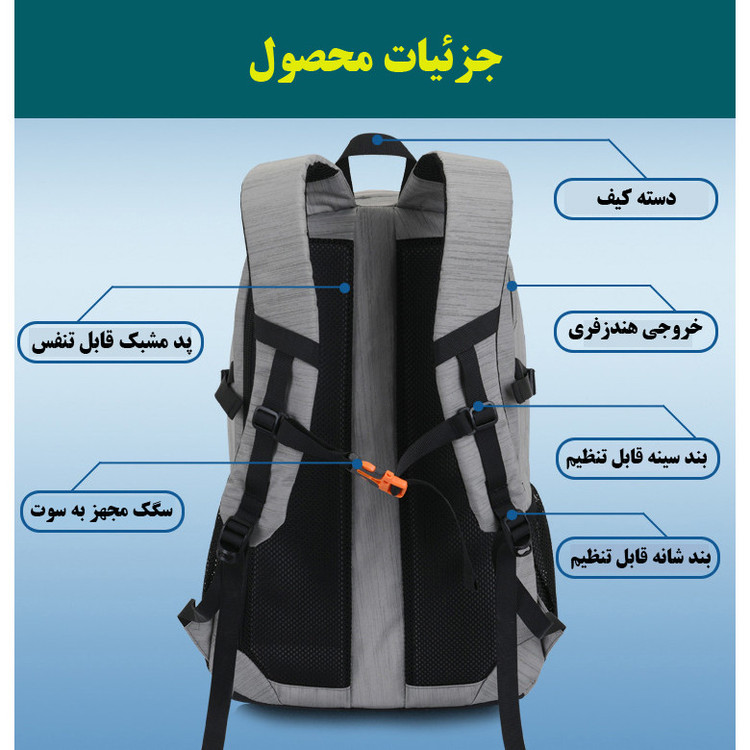 جیب بیرونی , جیب داخلی , دارای یک محفظه اصلی , محفظه نگهداری لپتاپ , جای قمقمه