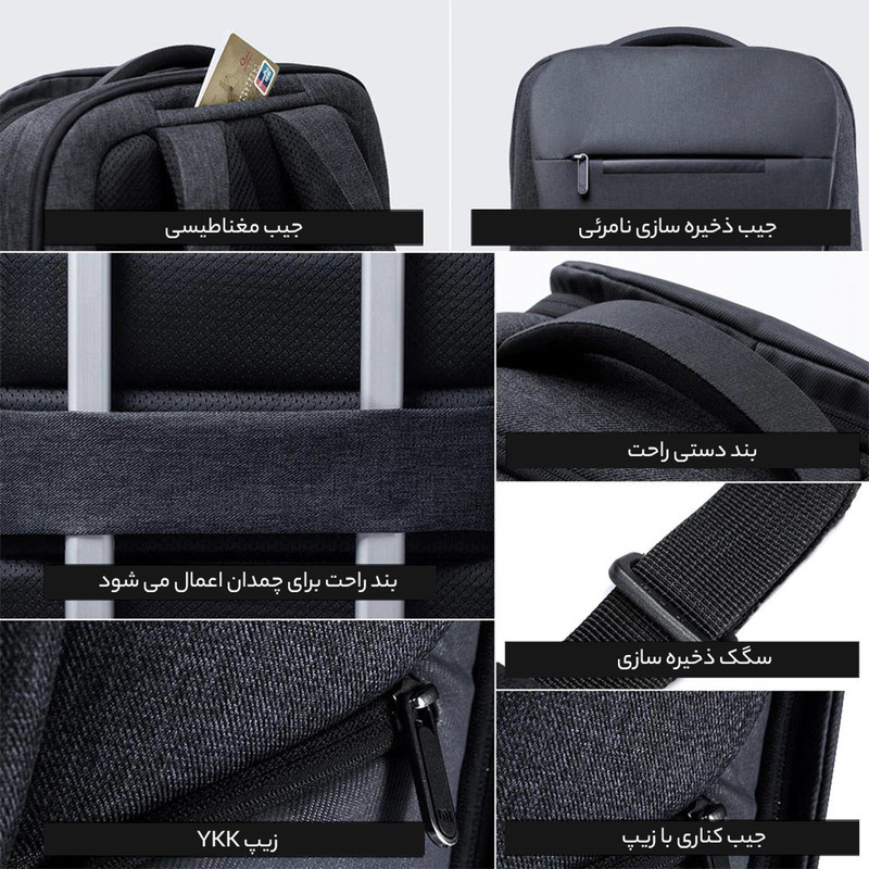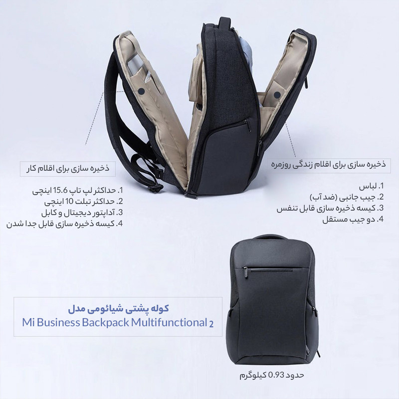مناسب لپتاپ 15.6 اینچی حجم بالای 26 لیتری بسیار سبک جیبها و محفظه های متعدد و مجزا