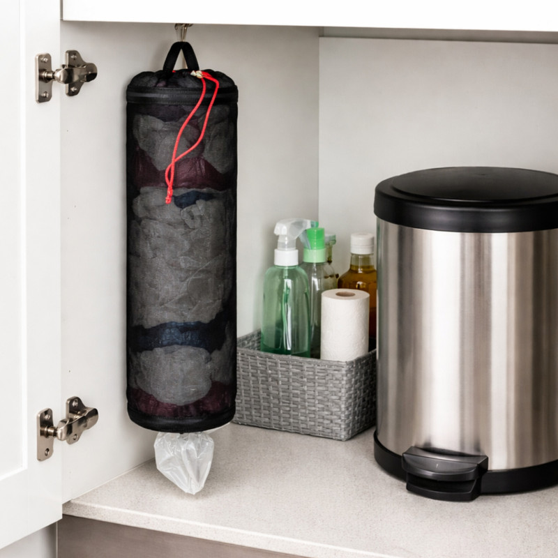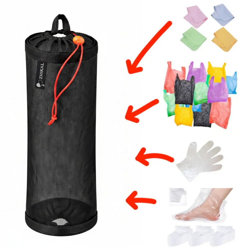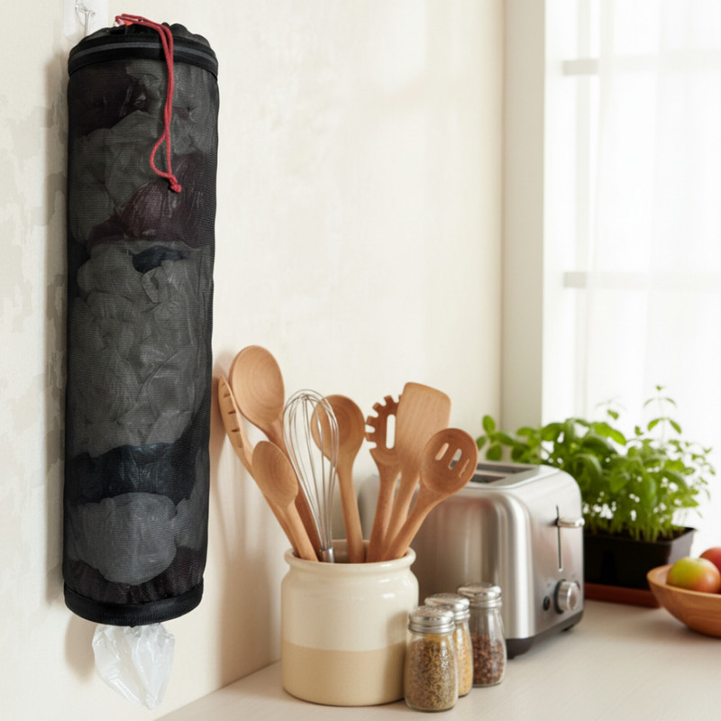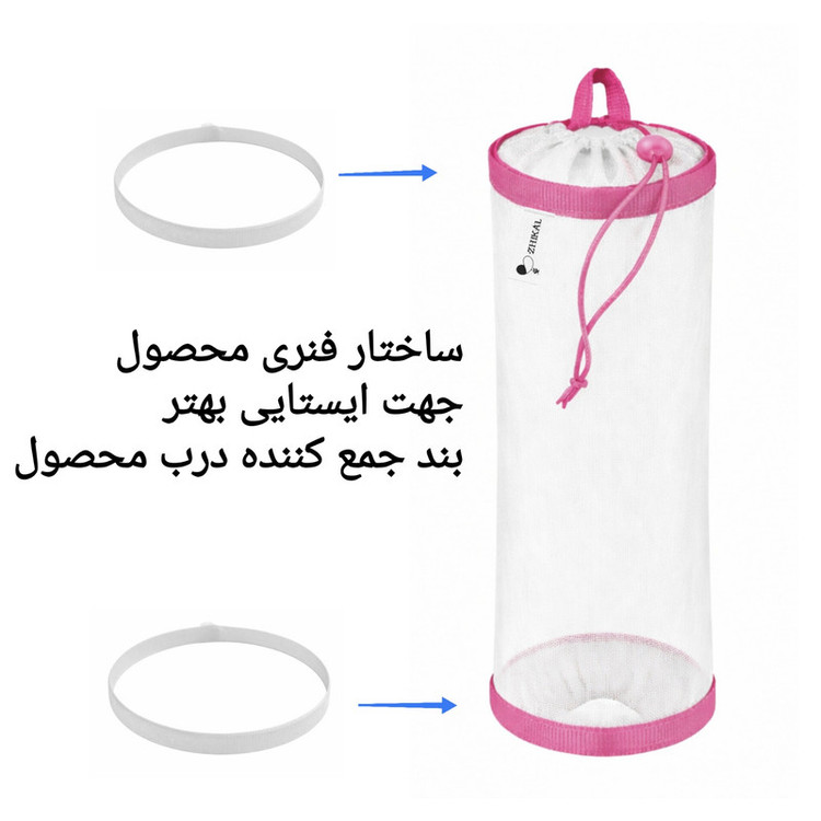 استفاده آسان ، قابل نصب بر روی دیوار کابینت و داخل کابینت حفظ فرم و شکل مناسب برای کیسه نایلون ، کیسه زباله ، دستمال آشپز خانه ، دستکش یک بار مصرف و ... ، دارای یک قلاب چسبی