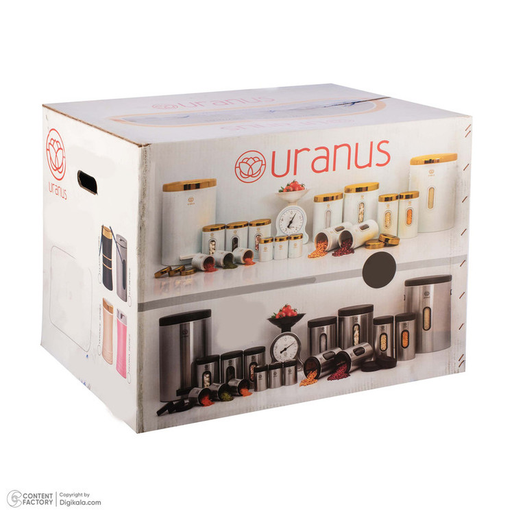 این سرویس شامل: سطل زباله ۱عدد سطل برنج ۱ عدد سطل قند ۱عدد سطل شکر ۱عدد بانکه حبوبات ۴عدد پاسماوری ۳عدد جای ادویه ۶عدد ترازو ۱عدد