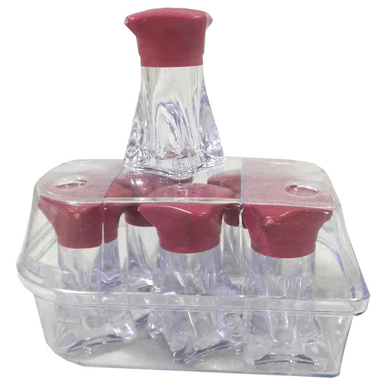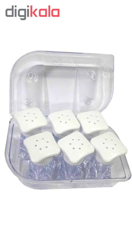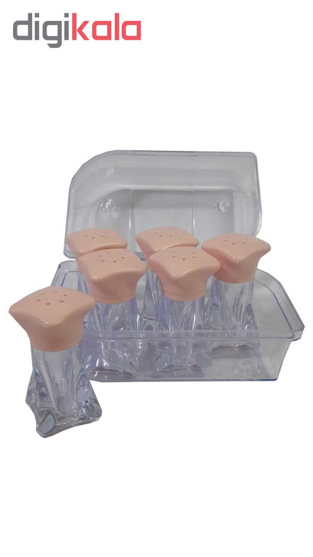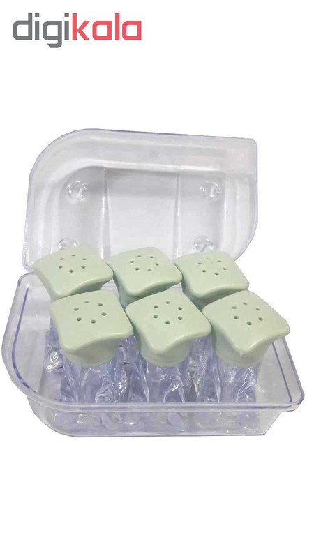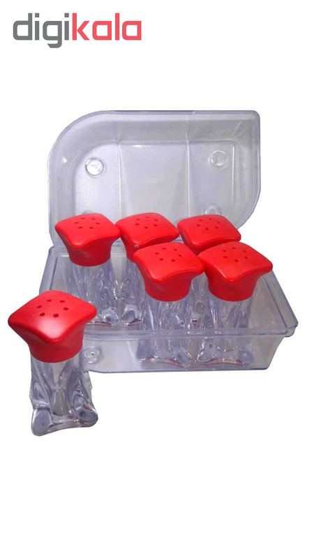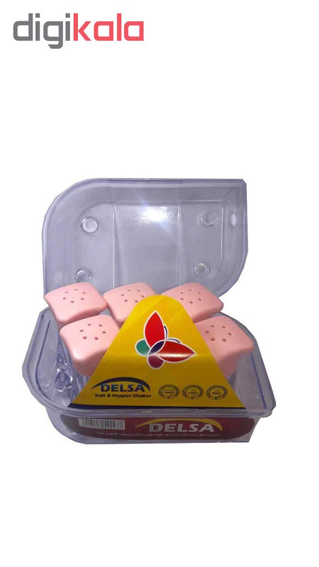 ابعاد هر نمکدان 3*3*6 سانتی متر هر 6 عدد نمکدان داخل یک بسته بندی