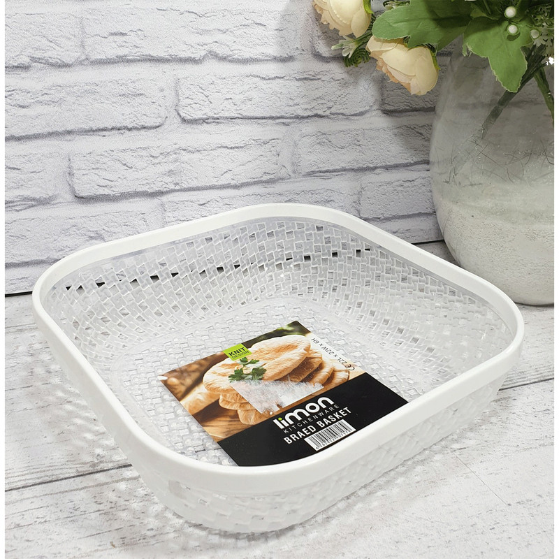سایر توضیحات: لبه های این سبد از پلاستیک و رنگبندی زیبای وانیلی ،طوسی روشن،کرپ،و سفید تشکیل شده است و خود سبد نیز از پلاستیک نیمه شفاف با طرح بافت میباشد که این محصول را نسبت به نمونه های مشابه بازاربه علت طراحی که دارد متمایز می نماید .
