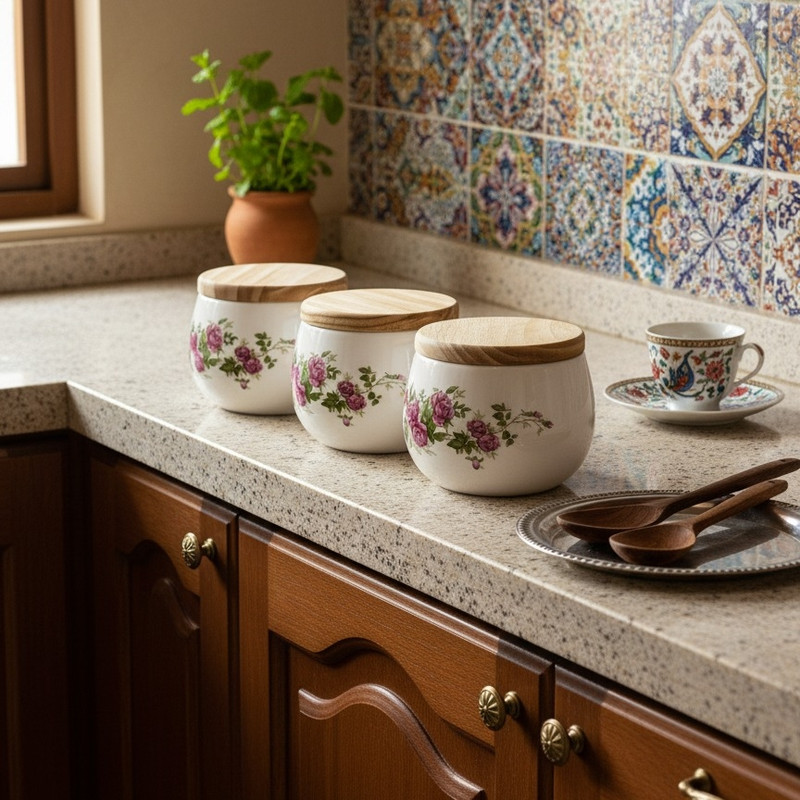 نوع بانکه و ظروف بنشن: ظرف حبوبات , ظرف قند و شکر , ظرف نگهداری پاستا
