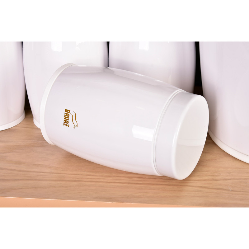 این ست شامل : 1 عدد سطل زباله ، 1 عدد سطل برنج ، 1 عدد سطل قند ، 1 عدد سطل شکر، 4 عدد جا حبوبات ، جا ادویه 6 پارچه ، 1 عدد استند