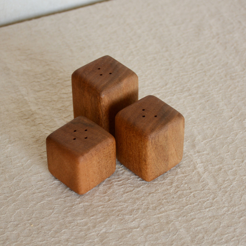 نمکدون چوبی از جنس چوب گردو تولید و با روغن گیاهی مخصوص ظروف چوبی پوشش داده میشود. قابل شست شو می باشد برای ماندگاری بیشتر بعد از شستن با دستمال خشک شود .با توجه به طبیعی بودن جنس محصول که چوب گردو می باشد اختلاف جزیی در رنگ و رگه با محصول موجود در سایت وجود دارد . شامل 3 عدد نمکدون