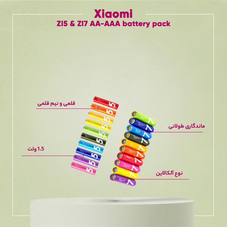باتری قلمی و نیم قلمی آلکالاین شیائومی مدل ZI5 - ZI7 بسته 20 عددی