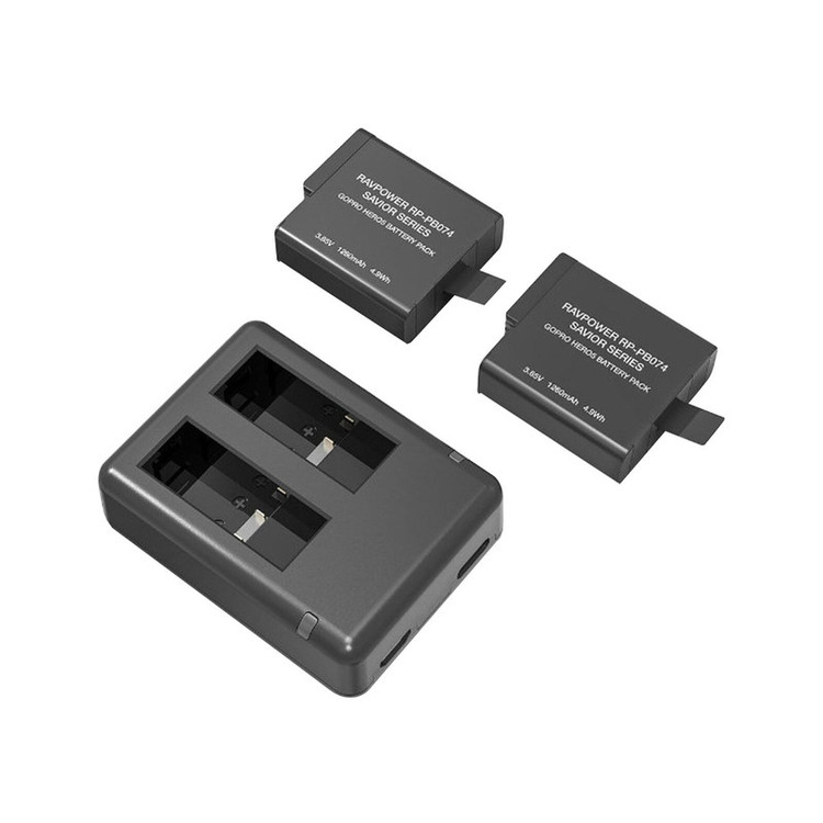 شارژر باتری دوربین راوپاور مدل RP-PB074 به همراه دو عدد باتری