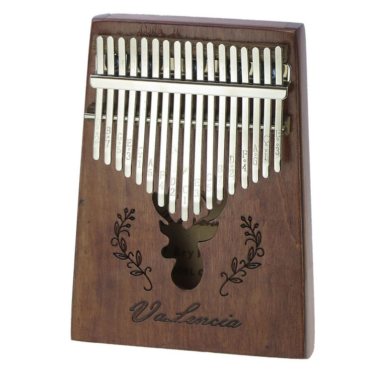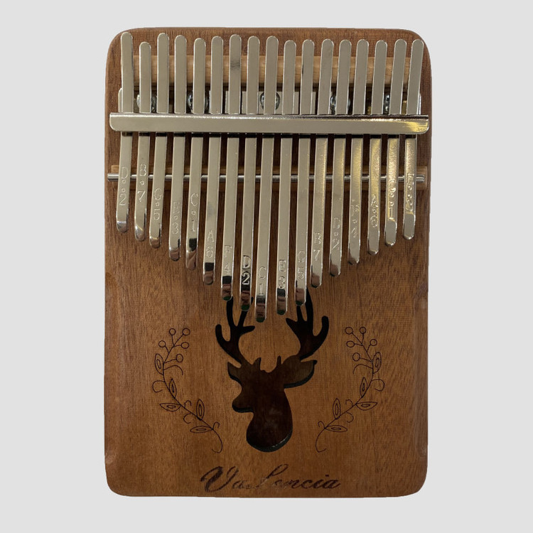 کالیمبا والنسیا 17 تیغه،که تعداد استانداردی از تیغه یا زبانه های فلزی را دارا بوده،از ساز های وارداتی درجه 1 میباشد،که با بالاترین کیفیت و استاندارد های جهانی ساخته شده. این نوع ساز تیغه ای،که خاستگاه اصلی آن کشورهای آفریقایی بوده،یکی از سازهای قدیمی این سرزمین به شمار می آید و بیش از هزار سال قدمت دارد.دارای هفده عدد تیغه ی فلزی است که وظیفه ی تولید صدا را برعهده دارند.این ساز با رنگ مات،از چوب اوکومه ساخته شده،که چوبی فوق العاده برای ساخت کالیمبا میباشد و در معدود ساز هایی از این چوب استفاده شده،که باعث میشود صدای حرفه ای را همزمان با ظاهر شکیل به همراه داشته باشد. تیغه های این ساز در بین ساز های وارداتی،از بالا ترین کیفیت برخوردار است که از فولاد ضد زنگ ساخته شده،تا بهترین کیفیت را به ارمغان آورد.این ساز همراه با جعبه کاور و چکش کوک تقدیم میشود.درمجموع این ساز برای هر کسی که تمایل دارد اصول نوازندگی کالیمبا را بیاموزد،و به خصوص برای افرادی که در نوازندگی این ساز مهارت دارند،انتخابی مناسب است. به دلیل طبیعی بودن چوب،ممکن است نقش و نگار چوب ساز با تصاویر متفاوت باشد.