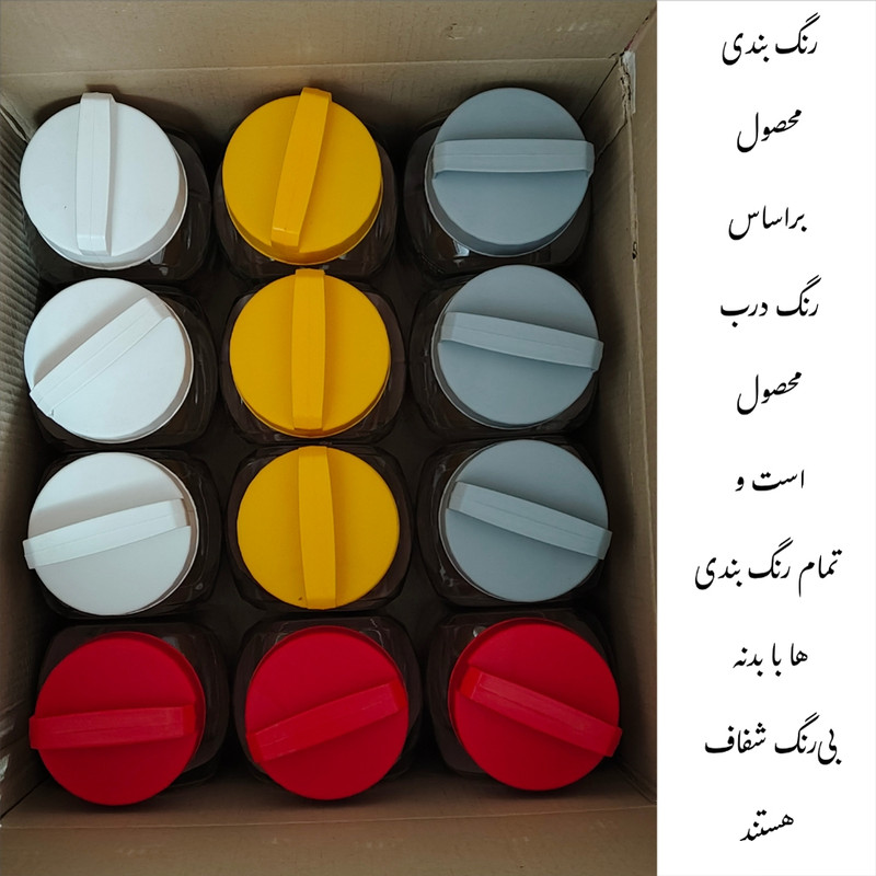 رنگبندی محصول در واقع انتخاب رنگ درب محصول است و در همه رنگبندی ها بدنه محصول بی رنگ شفاف است ظرفیت 4 لیتر