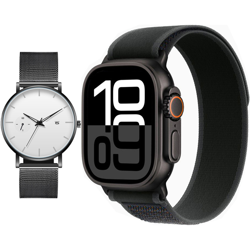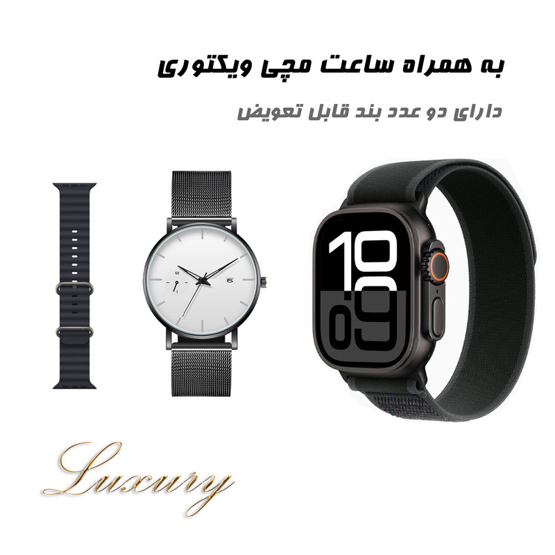 ساعت هوشمند 2.02 اینچی ویکتوری مدل HX11 ULTRA MAX با بند پارچه ای به همراه ساعت مچی