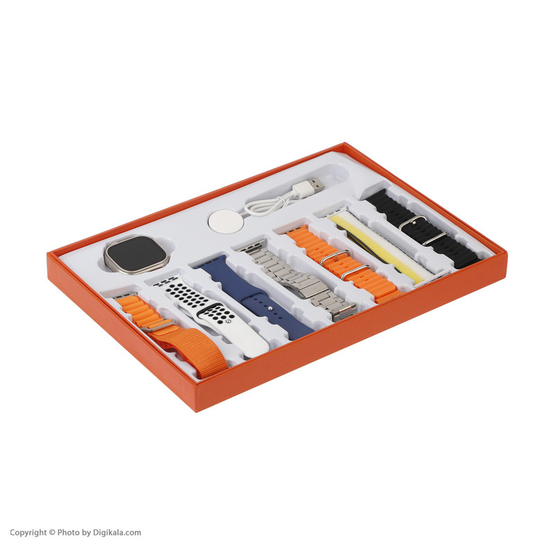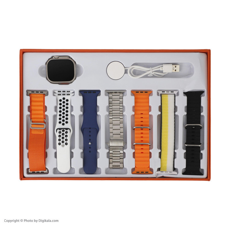 دو بند سیلیکونی در رنگهای مشکی و نارنجی(اوشن لوپ) دارای یک بند آلپاین لوپ و بند استیل