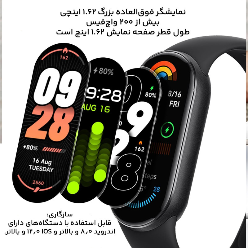 قابلیت نمایش پیامهای متنی / قابلیت شخصی سازی واچ فیسها / امکان نمایش وضعیت آب و هوا / امکان کنترل موسیقی /