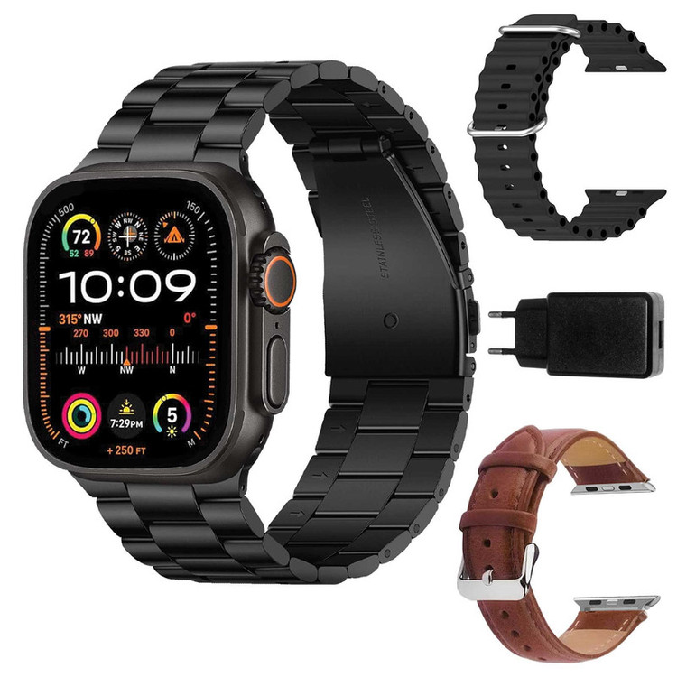 اقلام همراه : کابل شارژ وایرلس، بند استیل همرنگ، بند سیلیکونی اوشن همرنگ، بند هدیه (رنگ و طرح این بند به صورت رندوم ارسال میشود)، کلگی شارژر، کارت راهنمای فارسی