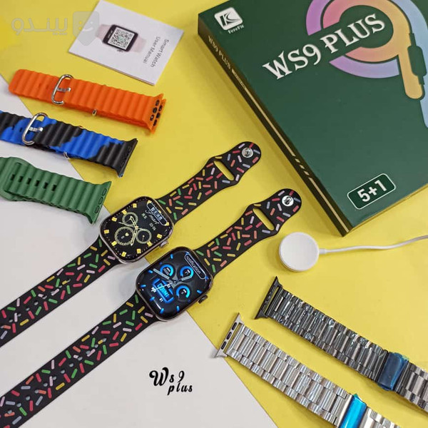 این ساعت هوشمند دارای 5 جفت بند ساعت هوشمند یک عدد دفترچه راهنما یک عدد سیم شارژر وایرلس است