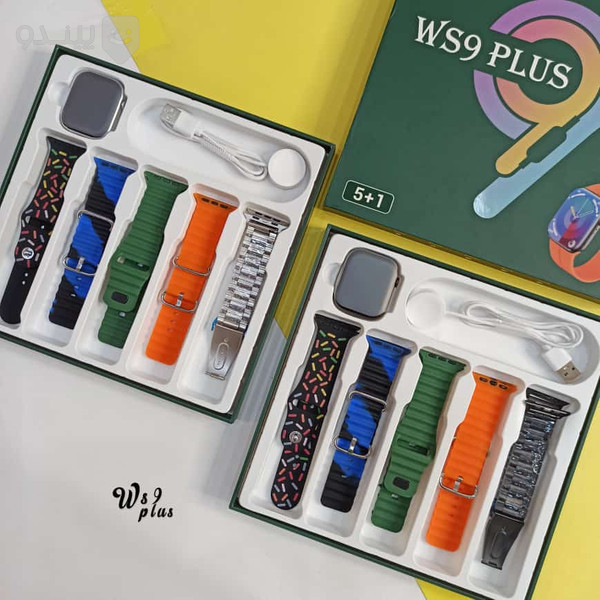 این ساعت هوشمند دارای 5 جفت بند ساعت هوشمند یک عدد دفترچه راهنما یک عدد سیم شارژر وایرلس است