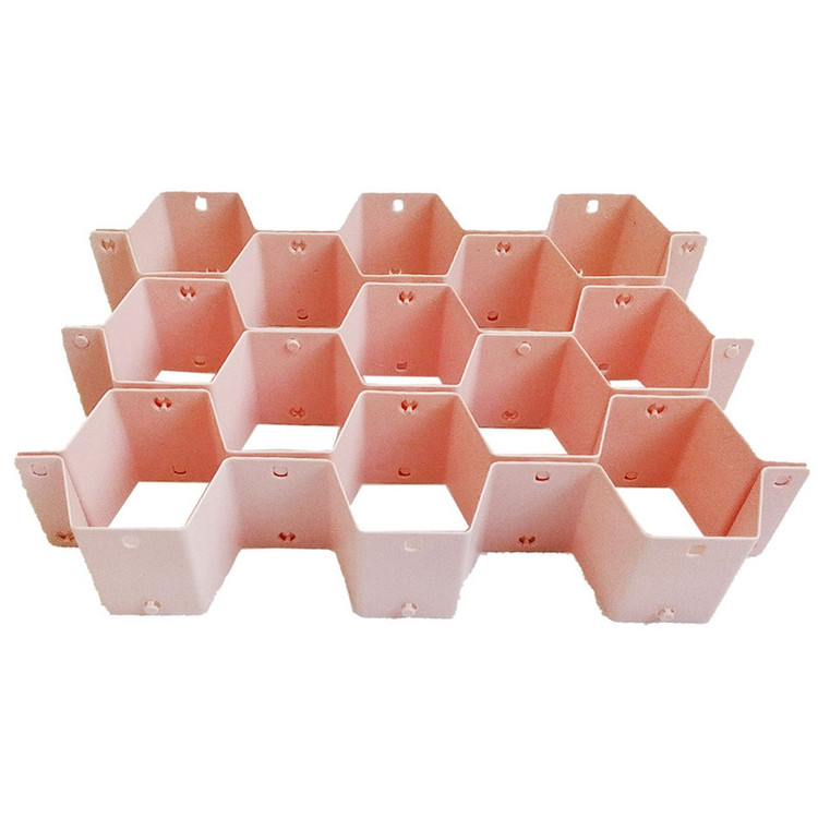 - تقسیم کننده کشو با شبکه های لانه زنبوری - دارای 13 شبکه جداگانه به ابعاد 7x8x11 سانتیمتر مناسب برای جداسازی دستمال، جوراب، شورت، لباس زیر و... می باشد.