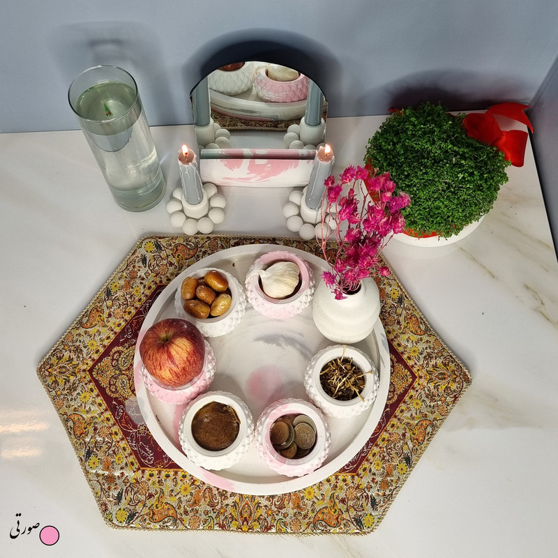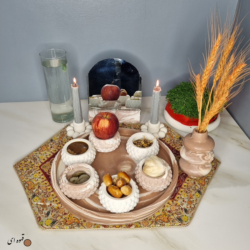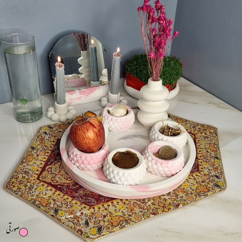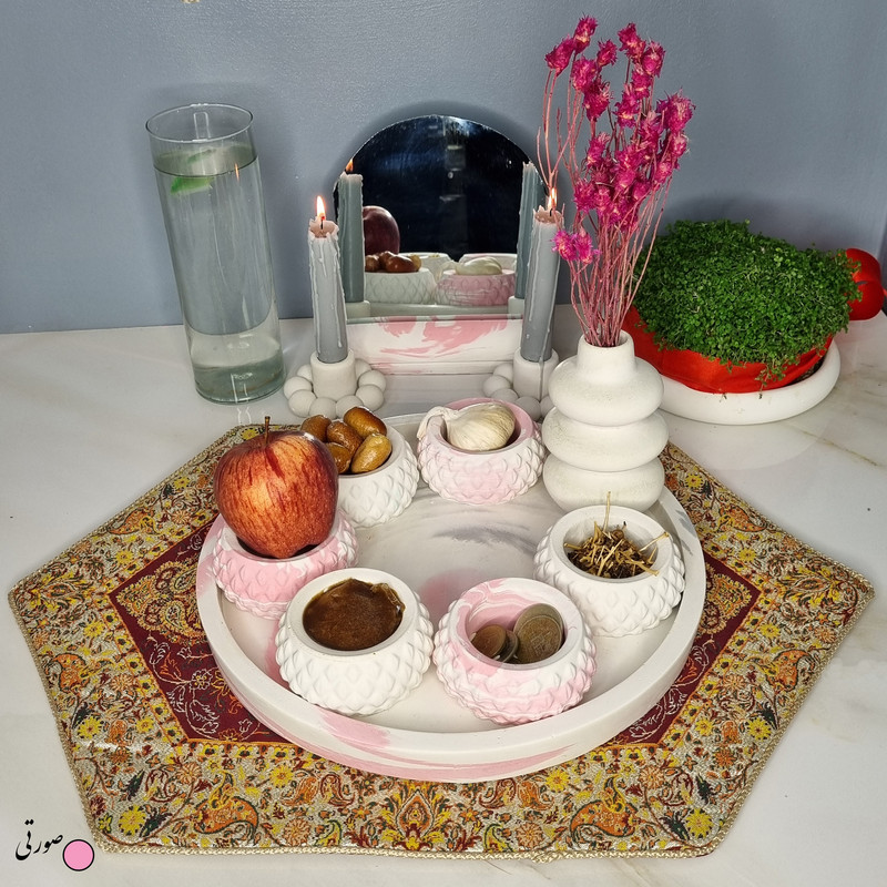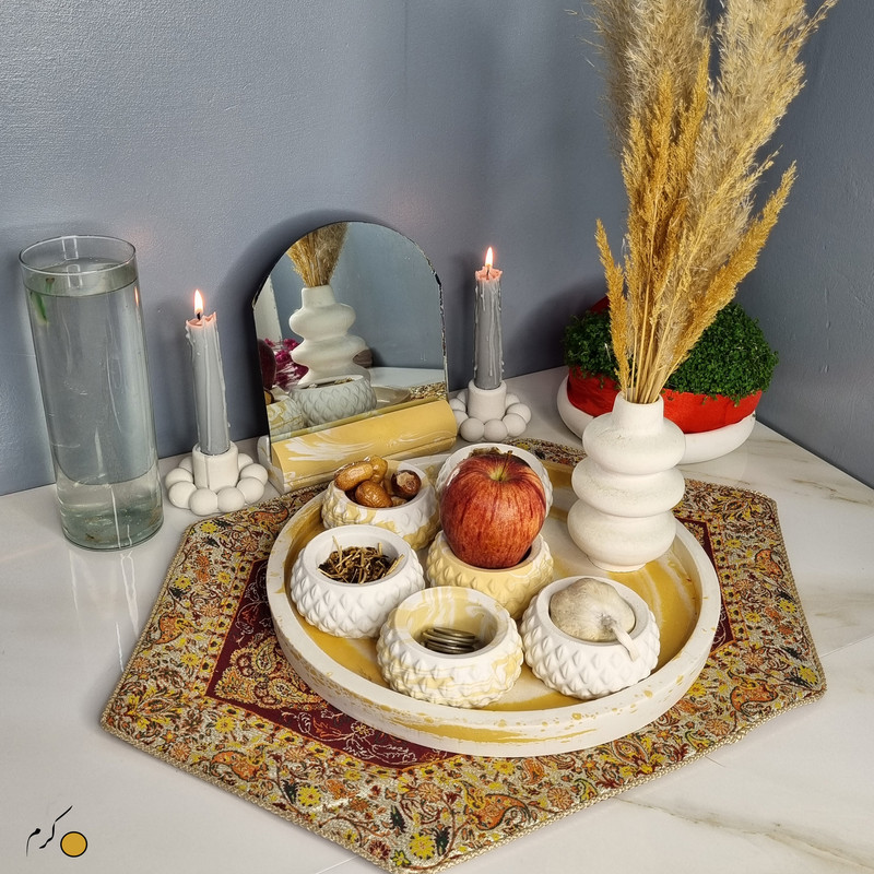 یک هفتسین کوچک و بهصرفه اقتصادی، جوانب زیبایی و معنوی هفتسین را در یک فضای کمحجم به شما معرفی میکند. این محصول، شامل آینه و استند آن، دو شمعدان، شش ظرف هفت سین ، یک گلدان بتنی آبشاری و سینی بتنی است. با این هفتسین جمعوجور، شما میتوانید تمام نمادهای مهم نوروز را در فضای محدود خود گنجانده و لحظاتی شاد و پر از هنر و زیبایی را به اشتراک بگذارید. این هفتسین زیبا ابر و بادی یک گزینه ایدهآل برای کسانی است که به دنبال یک آغاز سال نو معنوی و زیبا هستند و همچنین توجهی به محیط قرارگیری هفتسین و صرفة اقتصاد آن دارند. یک آثار هنری زیبا و منحصربهفرد که به آرامش و زیبایی نوروزی به خانهتان جلوه خواهد داد.
