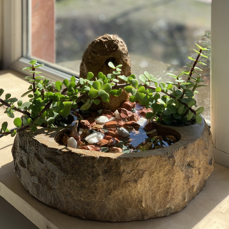 آیا یک آب نما سنگی در خانه نیاز دارید؟ ما با کار دستان هنرمند و با تراش و صیقل سنگهای دستچین شده از دل طبیعت، برای زیباتر و جذابتر کردن محیط کار و زندگی شما آبنماهایی از جنس سنگ طبیعی طراحی کردهایم که آرامش و زیبایی طبیعت را به شما هدیه دهیم. آب نما سنگدانه مدل AB553 از جنس سنگ بوده و ابعاد آن به نحوی است که برای جابهجایی آن با مشکل مواجه نمیشوید. آبنما به شکل دایره و قطر 30 سانتیمتر و ارتفاع آبنما در قسمت قله حدود 16 سانتیمتر است که هم برای اتاق، آشپزخانه و حتی روی یک میز زیبا در سالن خانه مورد استفاده است. جریان آب عامل بسیار مهمی برای تقویت انرژی مثبت به شمار می رود. گیاهان زنده نیز علاوه بر زیبایی و ایجاد اکسیژن توانایی افزایش انرژی مثبت و حس سرزندگی را در زندگی و محل کار شما دارند و گلدانهای سنگی مینیاتوری ما حسی طبیعیتر و زیباتر را برای شما به ارمغان میآورند. علاوه بر آن آب مظهر ثروت ورونق است. گفتنی است گیاهان زنده علاوه بر زیبایی و ایجاد اکسیژن توانایی افزایش انرژی مثبت و حس سرزندگی را در زندگی و محل کار شما را دارند. آب نما سنگدانه مدل AB553زیبایی خانه شما را دوچندان میکند.