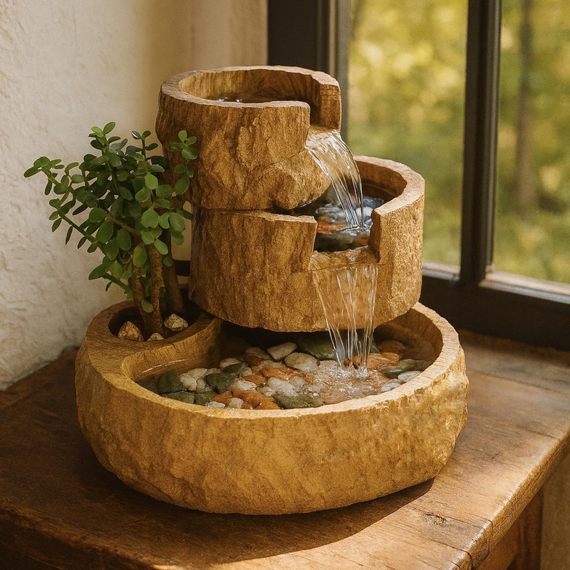 پمپ و سنگریزه (بدلیل احتمال آسیب دیدگی گیاه ضمن حمل، آبنما بدون گیاه ارسال می شود.)