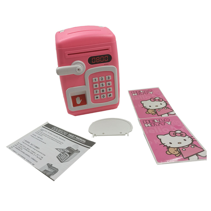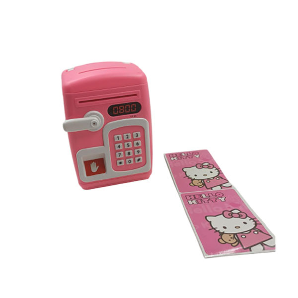 این اسباب بازی قلک و گاو صندوق رمزدار و موزیکال یکی از محبوب ترین وسیله های سرگمی برای کودکان است که از جذابیت به خصوصی برخوردار میباشد. این محصول قابلیت کشیدن خودکار اسکناس به داخل را دارد و روی بدنه ی این اسباب بازی دکمه هایی قرار دارد که با آن اعداد می توانید رمز گاو صندوق را وارد کرده تا درب آن باز گردد.