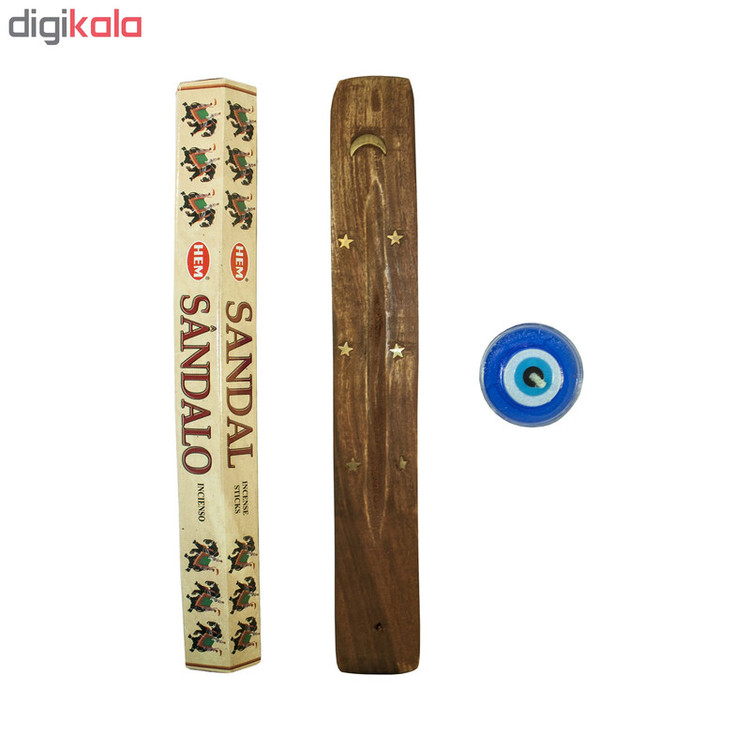 مجموعه عود و جاعودی یک عدد جاعودی از جنس چوب عود 20 عددی sandal مناسب برای ایجاد فضایی آرام رایحه ملایم رایحه درخت صندل