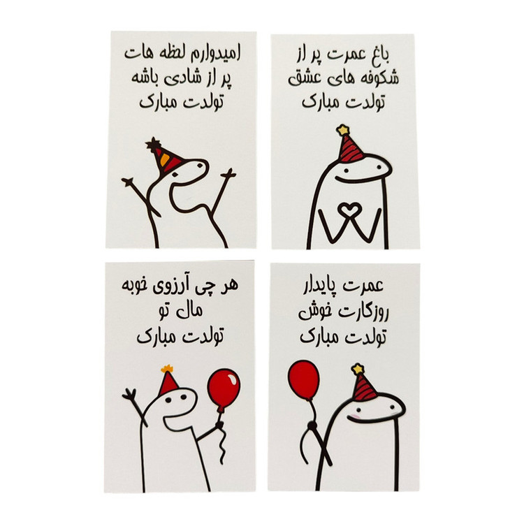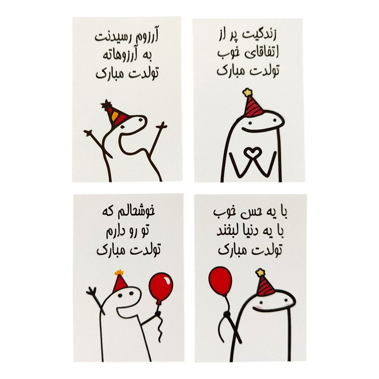 کارت تبریک تولد بسته ۱۴ عددی ، جنس کارت گلاسه براق ۲۶۰ گرمی ، دارای طول ۷.۵ و عرض ۵ سانتی متر ، مقاوم و با کیفیت
