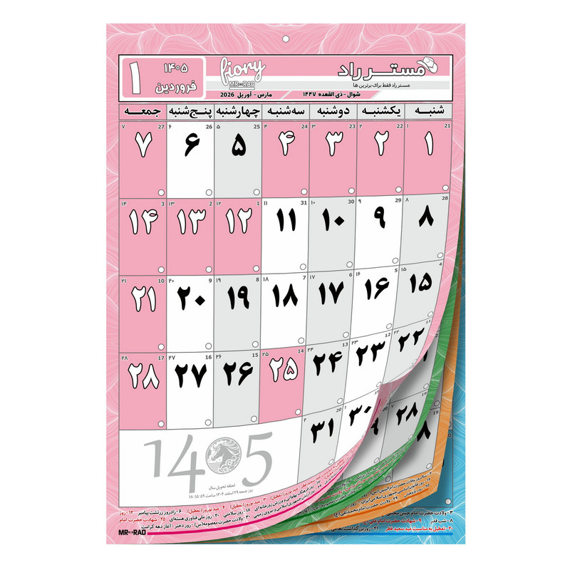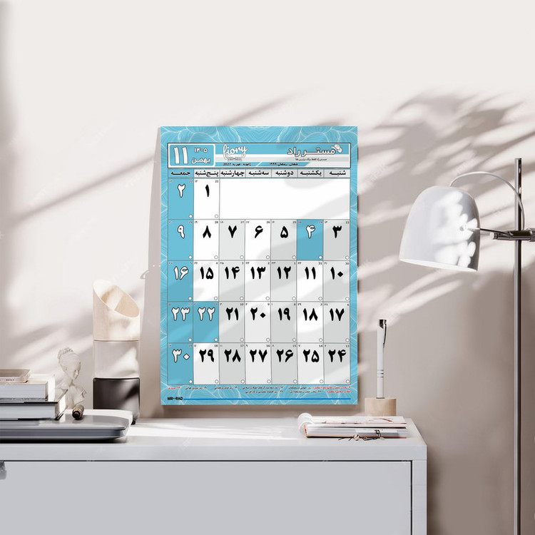 ابعاد A4 سایز دقیق 29X20 سانتیمتر 12 برگی هر برگ یک ماه با قابلیت یادداشت پشت هر برگ برنامه ریزی روزانه در ماه